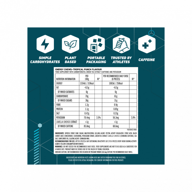 CLIF BLOKS® Energy* Chews are an easy-to-chew source of quickly absorbed carbohydrates that deliver glucose and fructose for fast fuel to working muscles [or for athletes during activity]