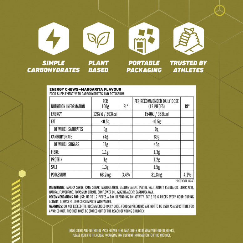 CLIF BLOKS® Energy* Chews are an easy-to-chew source of quickly absorbed carbohydrates that deliver glucose and fructose for fast fuel to working muscles [or for athletes during activity]