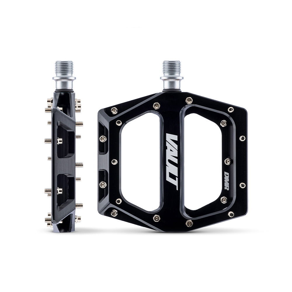 The DMR Vault pedal is a tuneable MTB flat pedal designed specifically for riders who want a bigger platform. Equally at home on an all mountain or downhill setups, the DMR Vault pedal offers great stability and grip for the bumpiest of trails • Colour: Gloss Black • The platform (top edge where the foot sits) is 105mm x 105mm • The pedal body shape is 105mm x 115mm and the depth is 17mm concave foot bed • 430g per pair. NB Torque setting at the Axle to Crank, for all the DMR Bikes pedal range, is 40 - 55Nm. |