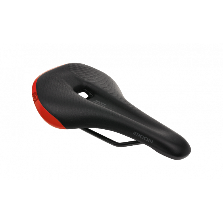 | Description | The new Ergon SM Men saddles are specifically tailored to the features of the male anatomy and optimized for the requirements of mountain biking. With the assistance of the latest scientific studies and intensive prototyping Ergonâ€~s interdisciplinary development team â€" consisting of sports scientists, industrial designers, engineers and test riders â€" have come up with a new generation of pressure-relief menâ€TMs saddles. The SM Men saddles effectively avoid discomfort and numbness for most applications in mountain biking â€" for most types of mountain bike riders. Relief Inlays: Increased comfort due to OrthoCell®-Inlays in the seating area, which help distribute pressure better. Large-Area Pressure Distribution: Perfect pressure distribution in the area of the sit and pubic bones by means of a flat, even contact area and high end padding foams. Flat Rear: The narrow, slightly inclining rear with a flat contour and a minimal ramp-up give great freedom of movement on the downhills. Flat contour: Due to the more upright pelvic orientation the saddle surface is flat with great freedom of movement. Effective Relief: The extremely deep and rearward increasing relief channel is complimented by a proper cut-out in the deepest spot. This construction combines all the benefits of a standard cut-out saddle without its drawbacks (often a very stiff shell) producing a particularly high degree of pressure relief of the sensitive perineal area. Exceedingly high pressures often are the cause for discomfort and numbness in the genital area. Shape: Through its Y-Shape the freedom of movement and legroom are maximized, while at the same time all bone structures are ideally supported. Integrated Mount: Convenient removable mount for accessories like Topeak® saddle bags.