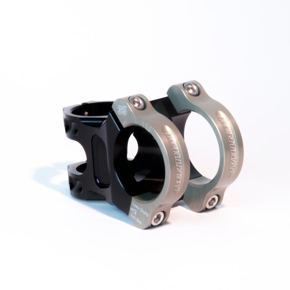 | Description | Our challenge with the Apex and Integra stems, was to keep the strength, stiffness and durability of the larger 35mm diameter package at the same weight as the 31.8mm equivalent. The strength, stiffness and durability were all matched to the 31.8mm equivalent, with and average of just an average of 7g added to the Apex. This all-new Renthal Apex stem covers all sectors of mountain bike. Light enough for XC racing, stiff and strong enough for a 780mm handlebar. The Renthal Apex stem features our unique new clamping system. This allows much of the stem body material to be removed, whilst retaining the strength and stiffness demanded by modern, wide handlebars. The clamps are inserted over the small diameter section of the handlebar and slid into the centre, giving a 240deg wrap of the handlebar. The Renthal Apex construction comprises a fully CNC machined 2014 aluminium body and 7075 aluminium clamps. An oversize centre bore, extensive 3-D machining and external webbing maximise structural strength and stiffness and minimise weight. Continuing Renthal's philosophy of giving the customer the choice in set-up, the stem is available in 33, 40, 50, and 60mm lengths. Each of these sizes can be flipped to give either a +/-6deg rise. This gives options for riders and bikes of all size, type and style. Weights
