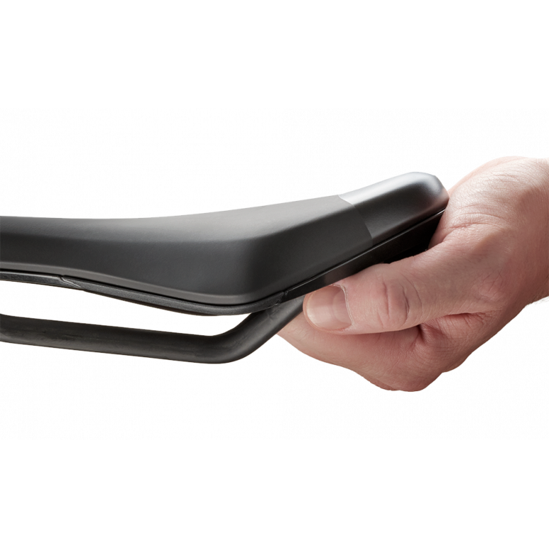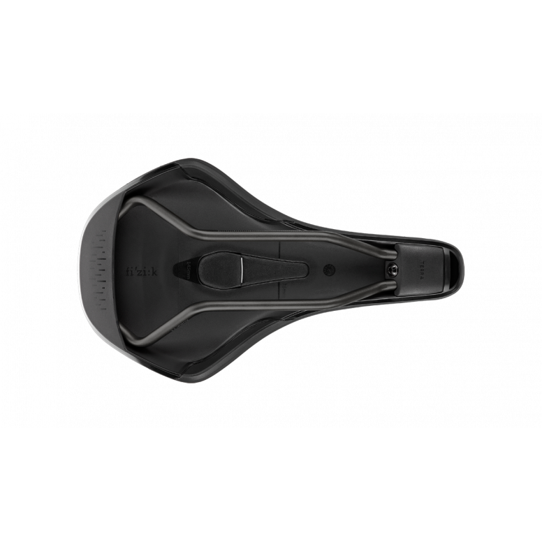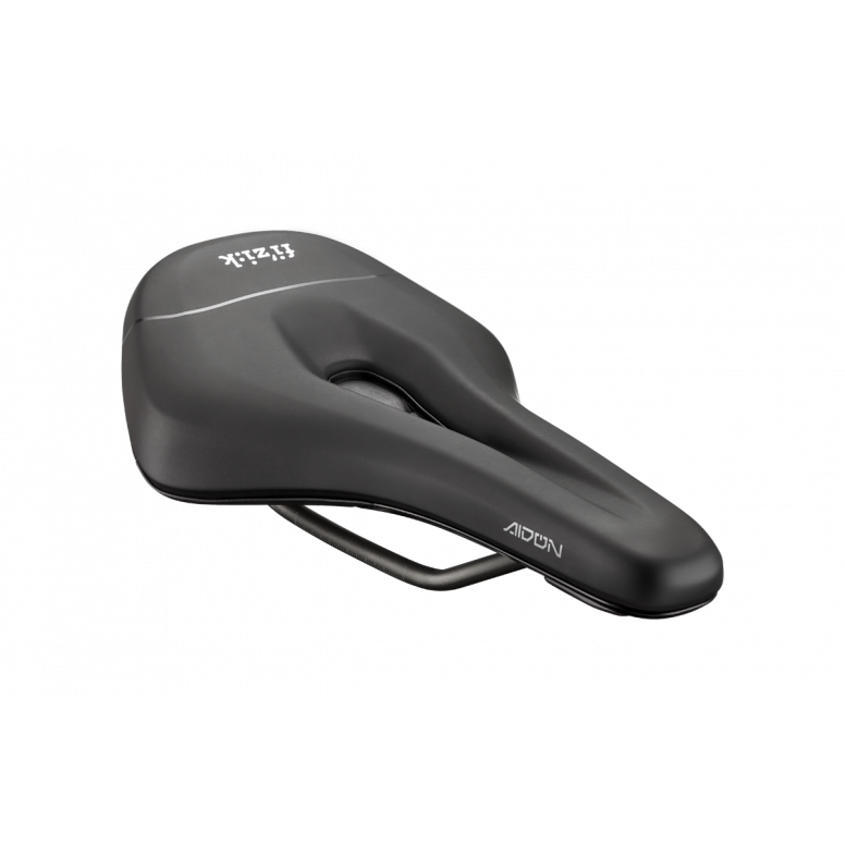 | Description | As part of the new Fizik range of short-nosed saddles, the Aidon is specifically designed for use with full-suspension E-MTBs. The shorter shape puts riders in a more planted position, making for greater stability, confidence and control when riding a heaver pedal-assisted bike. A gradual transition from nose to side wings allows smooth fore and aft position changes while guiding the bike. The waved kick tail provides lower-back support to help riders hold their position while tackling technical climbs as well as giving greater control during the electric kick of assistance. Once you've conquered the climbs and you head downhill with your dropper post lowered, the saddle becomes a control device. The Terra Aidon's rounded contours allow smooth and fast movement of your legs around the saddle to help you stay on course. Since more time is spent in a seated position on an E-MTB than during traditional riding, the Terra Aidon features a specific ergonomic cut-out, designed to relieve pressure on sensitive areas. A rubber layer at the bottom of the cut-out functions as a mud flap, blocking unwanted dirt and spray from the trails. Additionally, to increase comfort, the Terra Aidon is padded with a proprietary Type-2 foam that's thicker around the ischial sit bones are to support a more upright riding posture, as well as on the sides for better manoeuvrability and comfort while pedalling at a high cadence. For pedal-assisted all-mountain use, the Terra Aidon has been engineered with a compliant shell to offer a higher level of flexibility. The controlled elasticity absorbs vibrations for increased comfort. To better support the Terra Aidon's flexible shell, fizik use a closed-loop Mobius rail system for increased structural stability and responsiveness.  Main features