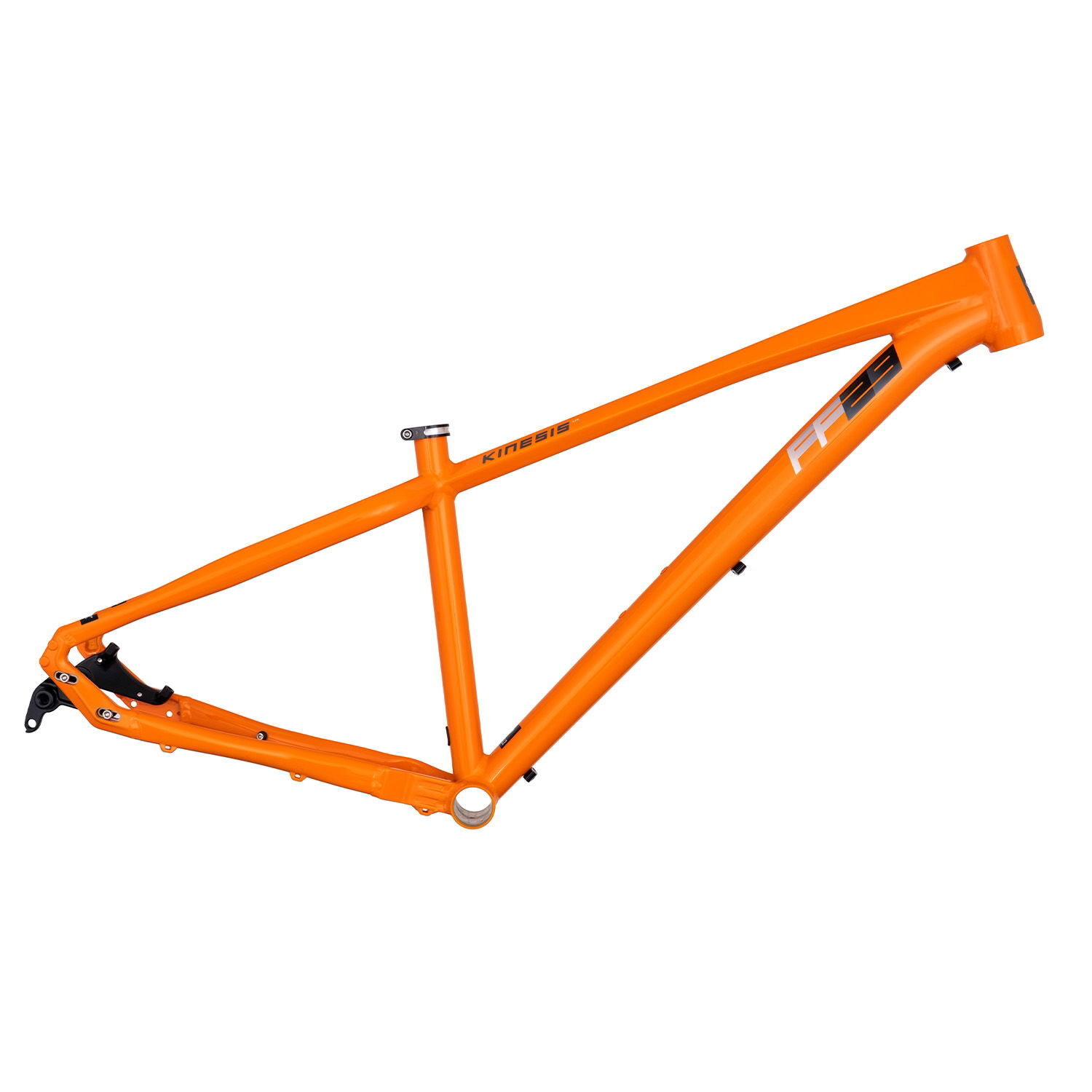 The all day, flippin' fast, hard charging hardtail. Your new favourite hardtail In 2012 we launched the FF29 and it went on to win multiple magazine reviews and awards. For 2023 the FF29 is re-born - longer, lower, meaner - but still flippin' fast. Geometry has been bought bang up to date, the custom frame build utilises all-new tubing technology and it comes brimming with features designed for UK trails. Working with Kinesis Taiwan for nearly 30 years gives us unique access to the best know-how in the aluminium frame industry. We can develop a mountain bike frame tuned to the needs that we want as riders, giving the ride quality we enjoy while combining stiffness and durability at the lowest possible weight. We have also designed the FF29 with adjustable dropouts so that riders can optimise the rear stay length for their style of riding. This also gives the opportunity to set the frame up as a single speed. The FF29 is long, low and stable with a steep seat tube and long reach numbers - the frame is actually sized by reach, and is designed for use with a dropper post. It's slack but this bike is no slacker - with a head angle of 65.5º, you get a nimble, agile feel at the bars for singletrack hacking. We wanted an all-day hard-charging fully-capable 29" hardtail bike based around a 140mm fork, the sort of bike most of us ride here on the South Downs. Great for climbing and seriously fast for the descents - just how a hardtail should be. How will you build yours? • SPF 6061 aluminium tubing. • 52mm chain line. • Clearance for 29 x 2.5" tyres. • 148 x 12mm Boost rear axle spacing. • BB92 BB shell. • 31.6mm seat post required. • Headset required: Tapered integrated. • GW 'Switch Lever' rear axle. • Colours: Orange or Black Bronze. • Weight: 2.0kg (L3 frame). • Frame is supplied with dropouts, rear axle, seat clamp and cable guides. • Warranty: 5 years. |
