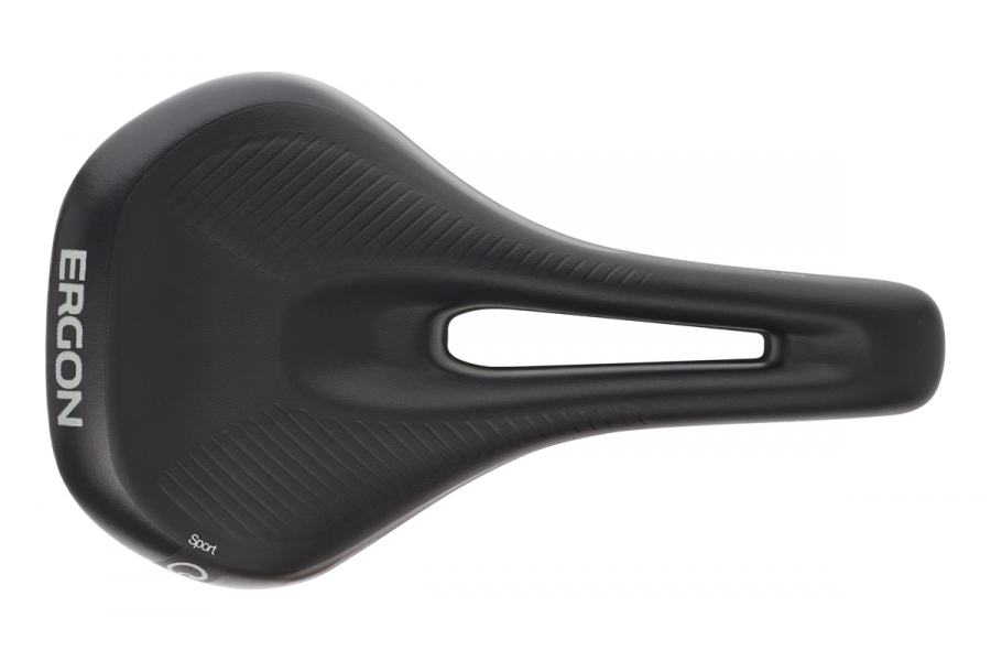 | Description | The Ergon design team has analyzed the requirements of E-Mountain bikers in detail. Longer periods of sitting, steeper uphills and greater levels of impact characterise the E-MTB experience. After intense development, the optimal saddle shape was found. The rear ramp better supports the rider in steep uphillriding situations when seated. The V-shape offers freedom of movement across the wide fl anks up to the padded nose - important for particularly steep climbs. Supporting Ramp: Strongly raised ramping for maximum support from behind - helps stabilizing your position on the bike and saves energy when riding uphill. Soft Comfort Padding: Maximum comfort when seated due to a thicker padding - even on long rides. Pronounced Relief Channel/Cut-Out: The Relief channel helps to avoid numbness and provides increased protection for soft-tissue areas. Specially adapted for men and women. Pressure Relief Inlays: More comfort thanks to the OrthoCell®-Inlays in the seating area, which helps distribute pressure better. Wide Front: In particularly steep trail sections, the position often is shifted towards the front. That's why the E-Mountain's saddle nose is deliberately designed wide and comfortable.