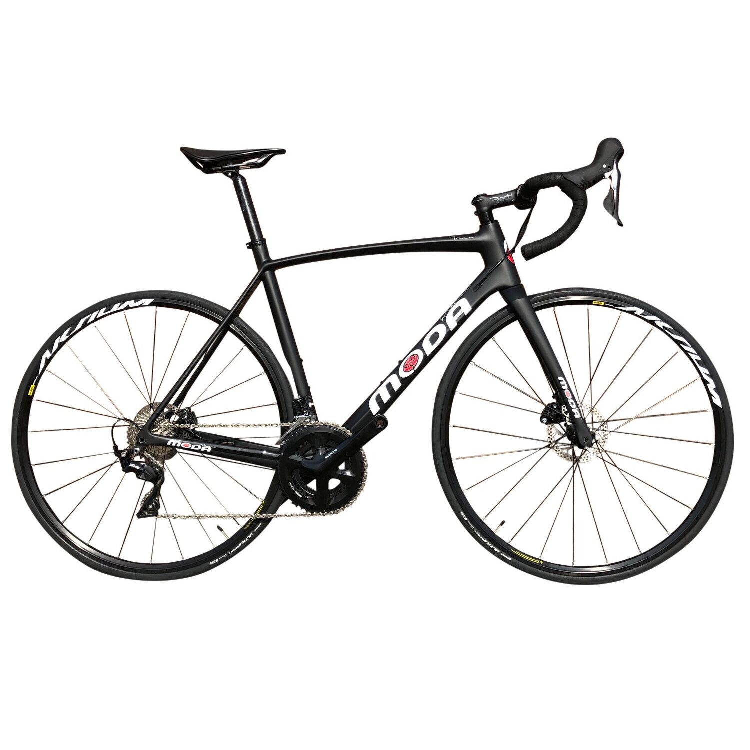 | Style | Moda Bike builder, request your dream build as a click and collect order and we will get in touch with you upon conformation all parts are available to build your dream bike. The newly developed Moda Vivo provides an affordable entry into the world of carbon road bikes. With a wide range of frame sizes available it is possible to have a carbon road bike that perfectly matches your measurements. Flat mount disc brakes and 12mm thru axles make for great braking and super reactive acceleration. A monocoque one piece frame construction combined with stunning aesthetics, offers the perfect price/quality ratio. internal cable routed system, standard BSA bottom bracket and a 31.6 seat post allow for easy position management and the geometry ensures longer distance can be undertaken with ease. |