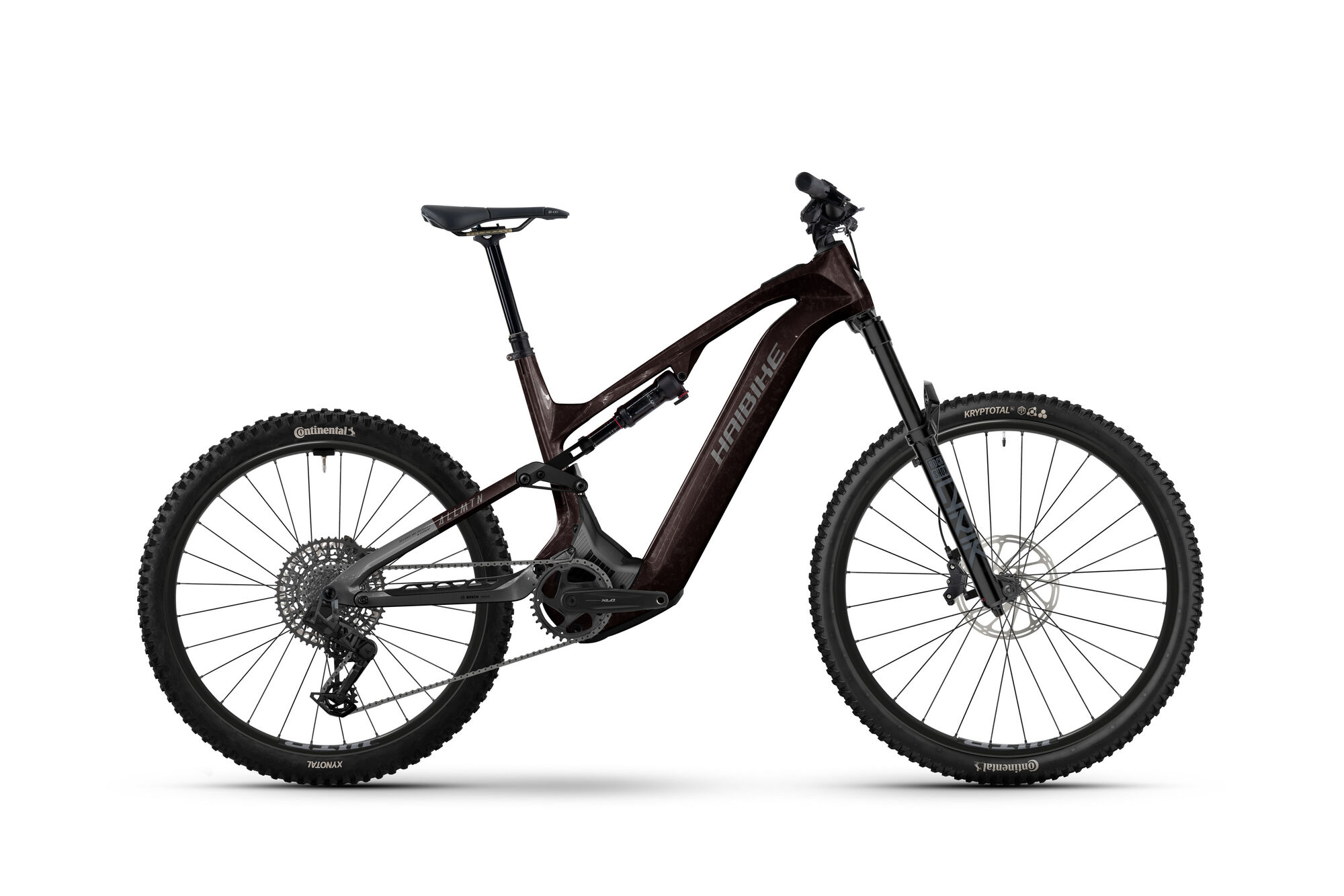 | Style | Maximum power through the mountains. That's what the HAIBIKE ALLMTN CF 9 delivers down to the last bolt. A sporty eMTB that impresses with peak all-mountain performance and clever engineering. To get the most out of the powerful Bosch Performance CX drive system we've mounted the motor inverted inside the carbon frame. This allows for improved heat management and greater efficiency when your rides get serious. A purpose-built kinematic system with a horizontal shock together with the mullet wheel mix and the 160mm RockShox fork turns rough downhill sections into smooth forest trails. The 800Wh battery offers lasting power and can be extended by 250Wh with an optional range extender. Grippy SRAM DB8 disc brakes round off this strong all-mountain setup. Perfect conditions for alpine adventures with maximum power. Motor: Bosch Performance Line CX Torque: 85 Nm Battery: Bosch Powertube 800Wh Display: Bosch Kiox 400C + Mini Remote Frame: High Uni Rear Shock: Rockshox Deluxe Select+ RT 230x60mm Standard DebonAir+ Fork: Rockshox Lyrik Base Rush RC DebonAir+ 160 mm Headset: Acros Semi-integrated ICR Top cup / bottom BlockLock ZS56/ZS56 Stem: XLC Not Adjustable ST-M50 Dia. 35 mm L: 40 mm A-Head Handlebar: XLC Riser Bar HB-M34 Dia. 35 mm Rise: 20 mm backsweep 9Ãdeg. Bar Tape / Grip: XLC GR-S34 Gravity Grip Brakes Levers: Sram DB8 Stealth-BL Brake Calipers: Sram Hydraulic Disc brake DB8 Stealth 4 pistons 220 mm Tyres: Continental Kryptotal-Fr Enduro Soft foldable skin SL 60-622 Rear Derailleur: Sram S1000 Eagle AXS T-Type 12s wireless Shift Levers: Sram Triggershift AXS Pod Controller Chain: Sram Chain GX Eagle T-Type 12s Cassette: Sram XS-1275 Eagle T-Type XD Chainset: XLC CR-E18 CRNKS + SRAM CR T-Type Bosch DU38 DM 160 Pedals: XLC Flat Pedal PD-M29 w/ Reflector + integrated Pins Saddle: Prologo Proxim W450 Performance 145 mm Seatpost: XLC Dropperpost Dropper SP-T21 Dia. 34.9 mm Travel: 125 mm 400 mm |