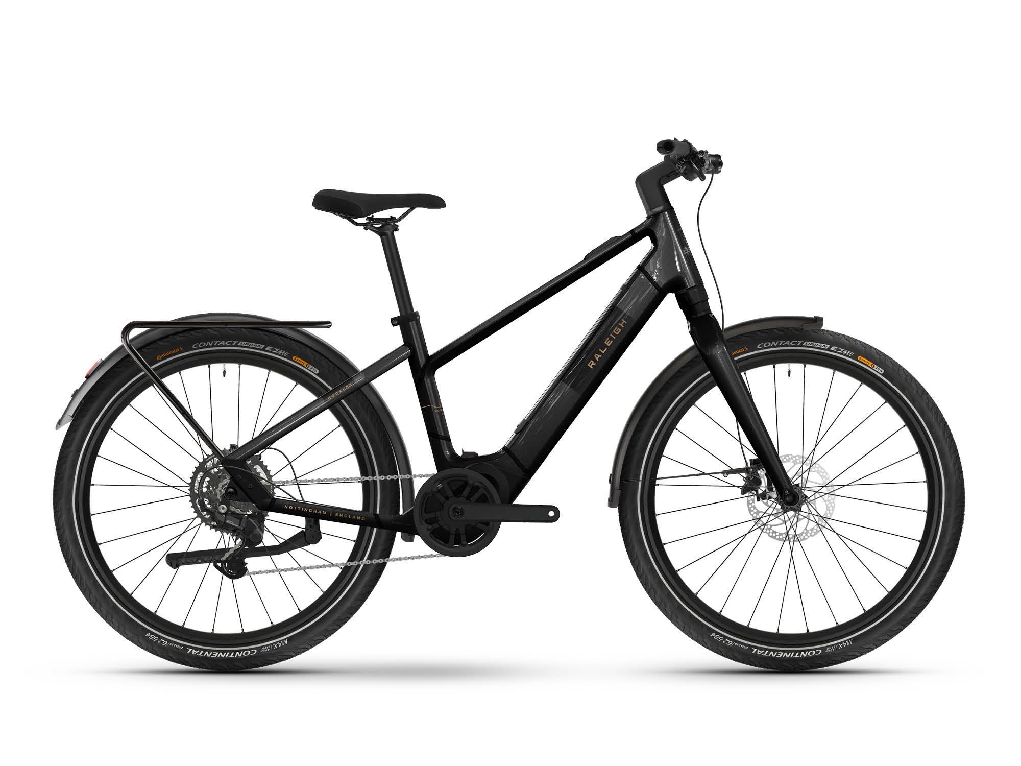 | Style | The Raleigh Hockley - a new bike for a new era. Lightweight frame 650B wheels headshock suspension system and a lightweight Bosch Performance Line SX motor and a 400Wh Powertube battery. Fully equipped with integrated lights mudguards and a rear carrier. Shimano 9 speed CUES gearing and Shimano Hydraulic disc brakes. Available in both Crossbar and Mid-Step versions. |