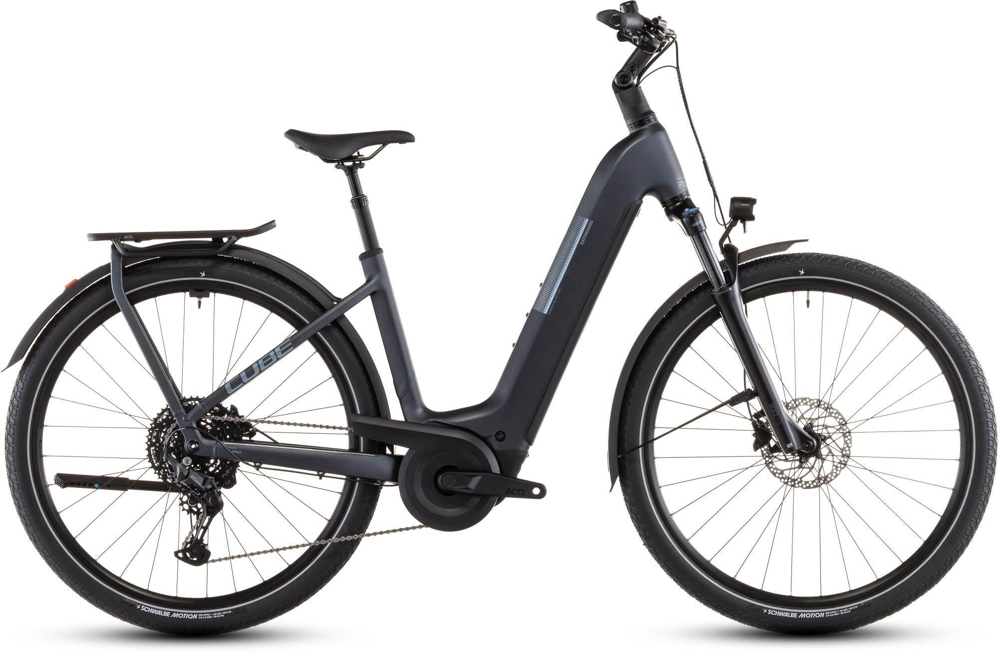 | Style | Adventure is what you make it â"Â and the Kathmandu Hybrid ONE from CUBE will make any pedal-powered adventure better. With its 800Wh PowerTube battery and Bosch CX drive there's up to 85 Nm of pedalling assistance at your disposal. Combined with the easy shifting and wide range of Shimano's Cues 1x10 gears, it's more than enough to take on any route with ease. The Suntour air suspension fork, suspension seatpost and adjustable stem are all there to make even long days in the saddle enjoyable. Strong, dependable Shimano hydraulic disc brakes give you safe stopping in all weathers. And a full complement of accessories, including lights and mudguards to accompany our Integrated Carrier 3.0, means you're ready for anything. Frame descriptionThe Kathmandu Hybrid's Easy Entry frame is designed to do exactly what it says, making adventurous cycling as accessible and straightforward as possible. The neatly housed Bosch CX drive and 800Wh PowerTube battery are just the start. Efficient Comfort Geometry is designed around a 100mm travel suspension fork, for better control even when the going gets rough. Integrated cables complement the frame's clean lines, while a UDH dropout is tough, versatile and future-proof. And, of course, there's an integrated chain guard mount and our tough, sturdy and exceptionally neat Integrated Carrier 3.0, so you can carry everything you need for your adventures. The Kathmandu Hybrid's Easy Entry frame is designed to do exactly what it says, making adventurous cycling as accessible and straightforward as possible. The neatly housed Bosch CX drive and 800Wh PowerTube battery are just the start. Efficient Comfort Geometry is designed around a 100mm travel suspension fork, for better control even when the going gets rough. Integrated cables complement the frame's clean lines, while a UDH dropout is tough, versatile and future-proof. And, of course, there's an integrated chain guard mount and our tough, sturdy and exceptionally neat Integrated Carrier 3.0, so you can carry everything you need for your adventures. |