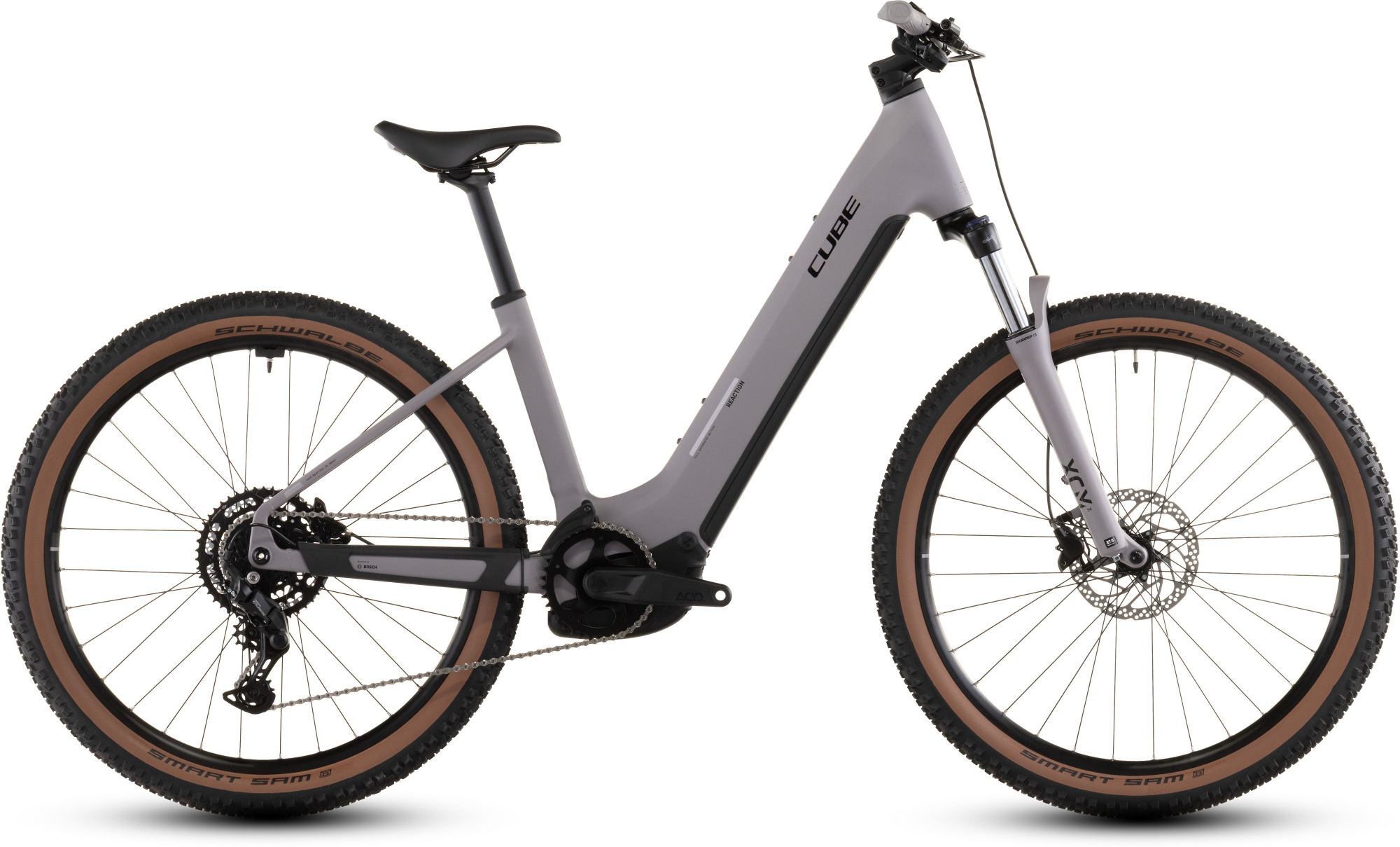 | Style | Discover your adventurous side, and see where it leads you. The Reaction Hybrid Performance takes the smooth power assistance â€" up to 75 Nm â€" of Bosch's Performance motor and adds easy-to-use Shimano Cues 9-speed gears and a 600Wh battery. Powerful Shimano hydraulic disc brakes and grippy Schwalbe Smart Sam 2.6in tyres give you reliable stopping power in any weather. And a suspension fork with 100mm travel, comfortable saddle and lock-on grips ensure you're comfortable for the long haul. Follow your curiosity... Frame descriptionWe call this frame Easy Entry because that's exactly what it does, but there's more to the Reaction Hybrid Performance than just an elegantly practical design. With the 600Wh PowerTube battery neatly concealed and the Bosch Performance drive housed securely, its svelte lines disguise lots of clever features. The integrated seat clamp and cable routing complement the clean aesthetic, and we built in our X-Connect system so that it's quick and easy to plug in an optional ACID front light. The chain guide is pre-installed, and it's also ready to accept ACID mudguards. And there are sizes to cater for most riders. We've thought of everything, so you can just ride. We call this frame Easy Entry because that's exactly what it does, but there's more to the Reaction Hybrid Performance than just an elegantly practical design. With the 600Wh PowerTube battery neatly concealed and the Bosch Performance drive housed securely, its svelte lines disguise lots of clever features. The integrated seat clamp and cable routing complement the clean aesthetic, and we built in our X-Connect system so that it's quick and easy to plug in an optional ACID front light. The chain guide is pre-installed, and it's also ready to accept ACID mudguards. And there are sizes to cater for most riders. We've thought of everything, so you can just ride. |