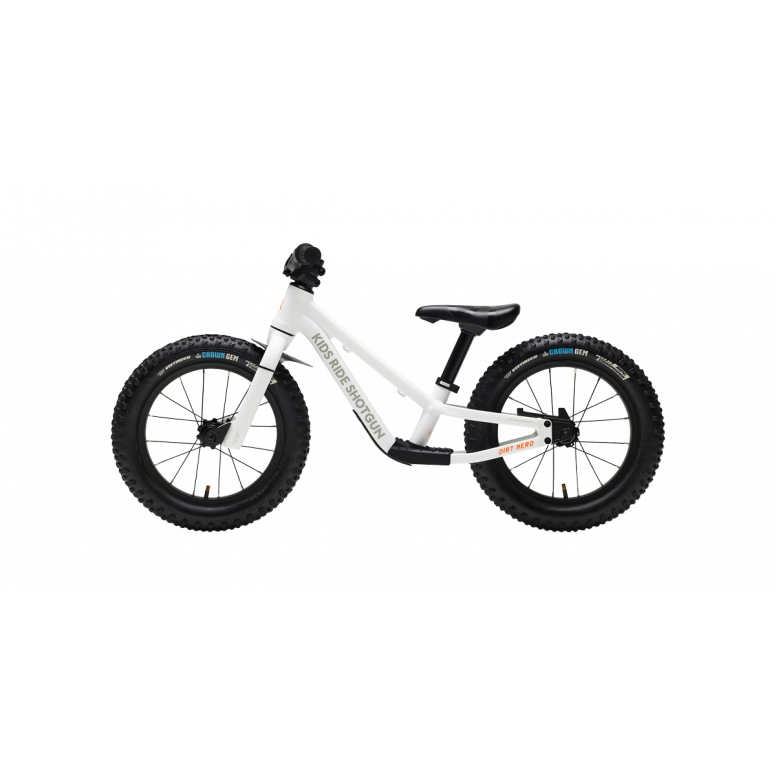 | Style | Our Dirt Hero balance bike is designed for MTB kids who want to hit the trails. With 12 - 14â€A? wheel convertibility, 2.25â€A? Vee Tire Crown Gem off-road tyres, mtb geometry and an optional Magura rear hydraulic disc brake â€" the Dirt Hero inspires confidence and progression in mini mountain bikers who want to get off the driveway and onto the dirt. Each bike comes with 3 Shred Til Bed MTB top tube skins, for your little one to make the bike their own.