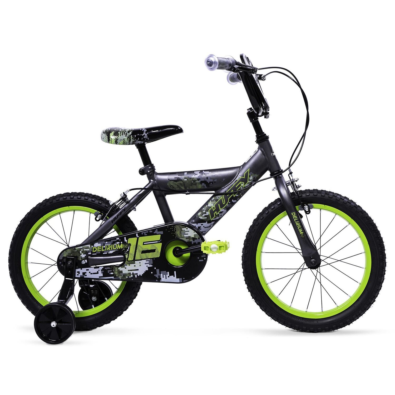| Style | Huffy: This 16"" bike by Huffy has a cool, edgy style. The matt silver frame, black graphics and number 16 race plate demand attention and guarantee fun! Easy-to-use caliper brakes deliver solid control. Translucent grips reveal dual-color graphics underneath. The padded seat adds comfort to every adventure, and the adjustable seat post allows the bike to grow with your child. With our easy 5-step assembly, you'll have this bicycle ready to ride in just a short time. Features