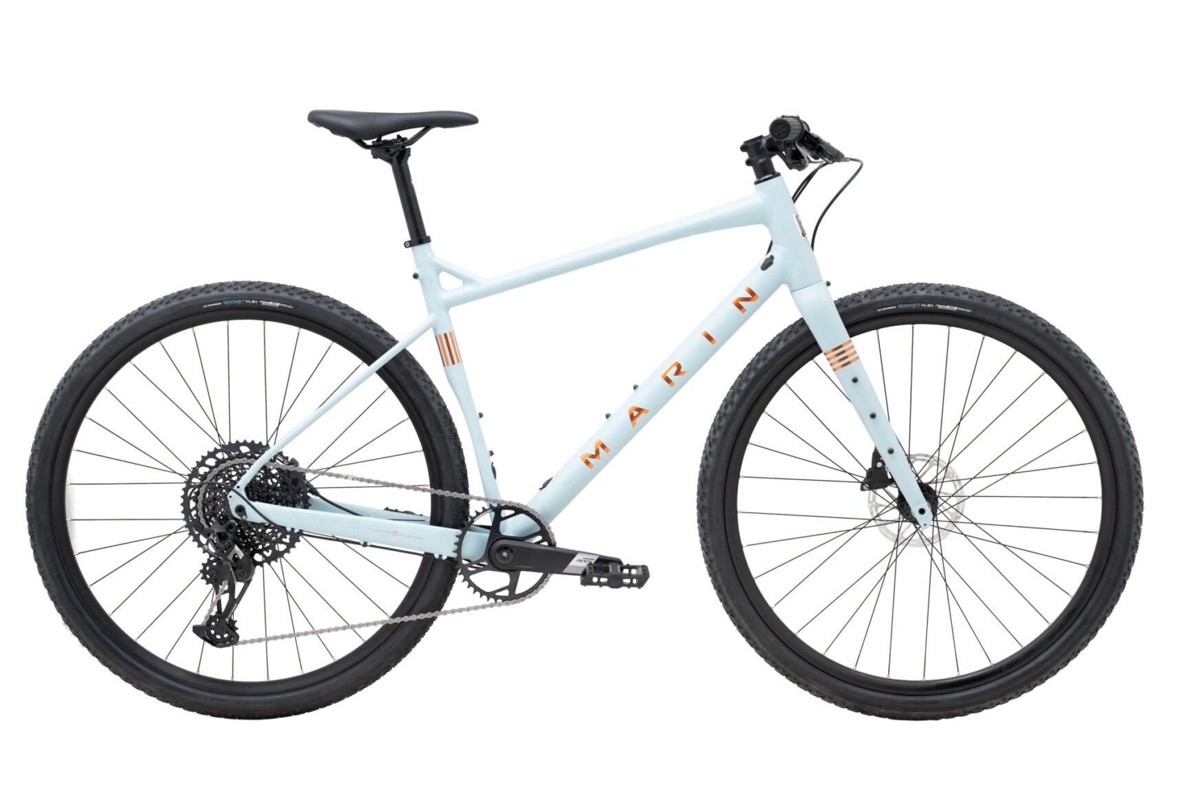 | Style | The DSX is the mountain biker's gravel bike with familiar hand positioning, reliable 1x drivetrains, large tire clearance, and dropper post routing for better off road control, and on road descending stability. The DSX is a flat bar gravel bike based on our Gestalt X drop bar platform with Series 3 aluminum frames and carbon forks with large tire clearance, low standover, hydraulic disc brakes, and 1x drivetrains with the comfort and heads up positioning of a flat handlebar. Mountain bike sensibilities in a flat bar package capable of fast commutes,long Saturday adventures spanning pavement and light singletrack, and all-day gravel events. Frame: Series 3 DSX, 6061 Aluminum, Tapered Head Tube, Relieved BB, Internal Cable Routing, Mudguard and Rack Mounts, Flat Mount Disc, 142x12mm Thru-Axle Fork: Marin Full Carbon w/ Tapered Steerer, 12mm Thru-Axle, Flat-Mount Disc, Fender Eyelets Headset: FSA No.42 ACB, Sealed Cartridge Bearings, 1 1/8" x 1 1/2" Stem: Marin 3D Forged Alloy Handlebar: Marin MiniRiser Grips: Marin MTB Brake Levers: SRAM Hydraulic Brakes Front: SRAM DB-S300 Flat Mount Hydraulic Disc, 160mm Rotor Brakes Rear: SRAM DB-S300 Flat Mount Hydraulic Disc, 160mm Rotor Tires: Vee Tire Co. Rocket Man, 700Cx44mm Rim: Marin Aluminum Double Wall, 21mm Inner, Disc Specific, Tubeless Compatible Hub Front: Forged Aluminum, 100x12mm, Disc, 32H Hub Rear: Shimano Forged Aluminum, 142x12mm, Microspline, Disc, 32H Spokes: 14g Black Stainless Steel Derailleur Front: - Derailleur Rear: SRAM Apex 1, 12-Speed Shift Lever: SRAM NX 12-Speed Chain: SRAM NX Eagle Cassette: SRAM CS-XG-1275, 10-52T Crankset: SRAM Apex 1, 40T Bottom Bracket: SRAM DUB BSA Pedals: Commute Platform Saddle: Marin DSX Seatpost: Marin Alloy Extras: Bolt-On Thru-Axles F and R |