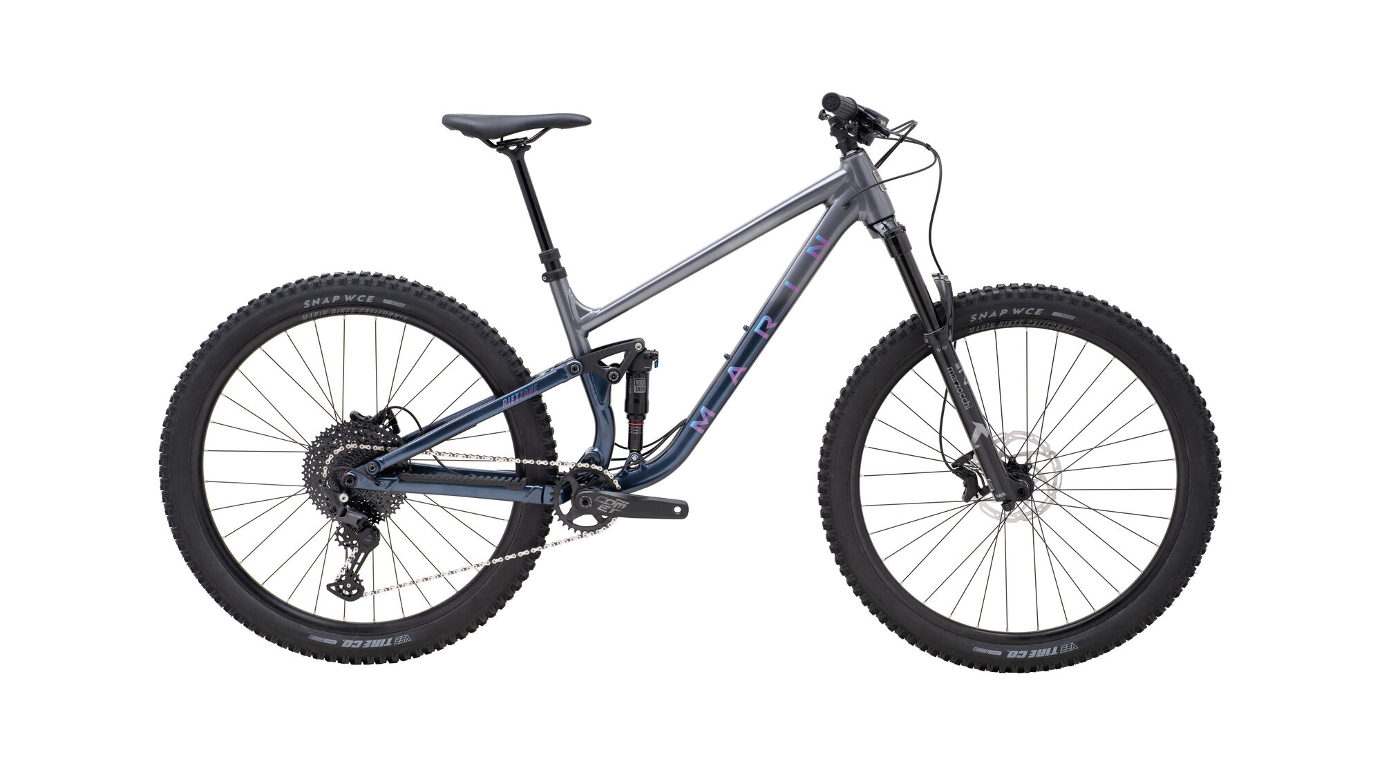 | Style | The Rift Zone is our most speed oriented MultiTrac bike, created for the rider looking for the speed and roll over capabilities of 29" wheels in a trail capable package. The Rift Zone represents the most modern 29" short travel trail bike possible featuring 125mm of MultiTrac suspension and progressive geometry that takes full advantage of decades of trail riding experience to create best-in-class handling, both in and out of the saddle. The Rift Zone is available with a carbon fiber or aluminum front triangle and is an ideal bike for mixing it up between long trail days in the saddle and fast weeknight group rides. Frame: All New Series 3 6N/A61 Aluminum Frame, 29" Wheels, 13N/Amm Travel, MultiTrac Suspension Platform, 148x12mm Boost Thru-Axle, 73mm Threaded BB w/ ISCGN/A5 Tabs Rear Suspension: RockShox Deluxe Select RT, Debonair Air Sleeve, Rebound Adjustment, Custom Tune, 21N/Ax5N/Amm, M8x25mm Hardware Fork: Marzocchi Bomber Z2 29", Rail Damper with Sweep Adjustment, 140mm Travel, Kabolt Bolt-On Axle, 44mm Offset Headset: FSA No 57E, Semi-Sealed Cartridge Bearings, 1 1/8" x 1 1/2" Stem: Marin 3D Forged Alloy, 35mm Handlebar: Marin Mini-Riser, 6N/A61 Double Butted Aluminum, 12mm Rise, 72N/Amm Width, 4deg Up, 9deg Back Grips: Marin Grizzly Lock-On Brake Levers: Tektro HD-M535 Brakes Front: Tektro HD-M535 Hydraulic Disc, 180mm Rotor Brakes Rear: Tektro HD-M535 Hydraulic Disc, 180mm Rotor Tires: Vee Tire Snap WCE 2.35", Top 40 Compound, GXE Core, 90 TPI, Tubeless compatible Rim: Marin, Double Wall Alloy, 29mm Inner, Pinned Joint, Disc Specific, 32H, Tubeless Compatible Hub Front: Shimano HF-MT410B, 110x15mm, Centerlock Hub Rear: Shimano FH-TC500, 148x12mm, Disc, HG Freehub Body Spokes: 14g Black Stainless Steel Derailleur Front: - Derailleur Rear: Shimano Deore, 12-Speed, SGS Shift Lever: Shimano Deore, 12-Speed, SL-M6100-R Chain: KMC X-12 Silver and Black Cassette: Sunrace, 12-Speed, 11-51T Crankset: FSA Comet, Modular 1x, 32T Direct Mount Chainring, MegaTooth Technology, Boost Spacing Bottom Bracket: External Sealed Cartridge Bearing Pedals: - Saddle: Marin Speed Concept Seatpost: TranzX, YSP18JL, 1x Remote, Size S 15N/Amm Travel, All Other Sizes 17N/Amm Travel, 3N/A.9mm |
