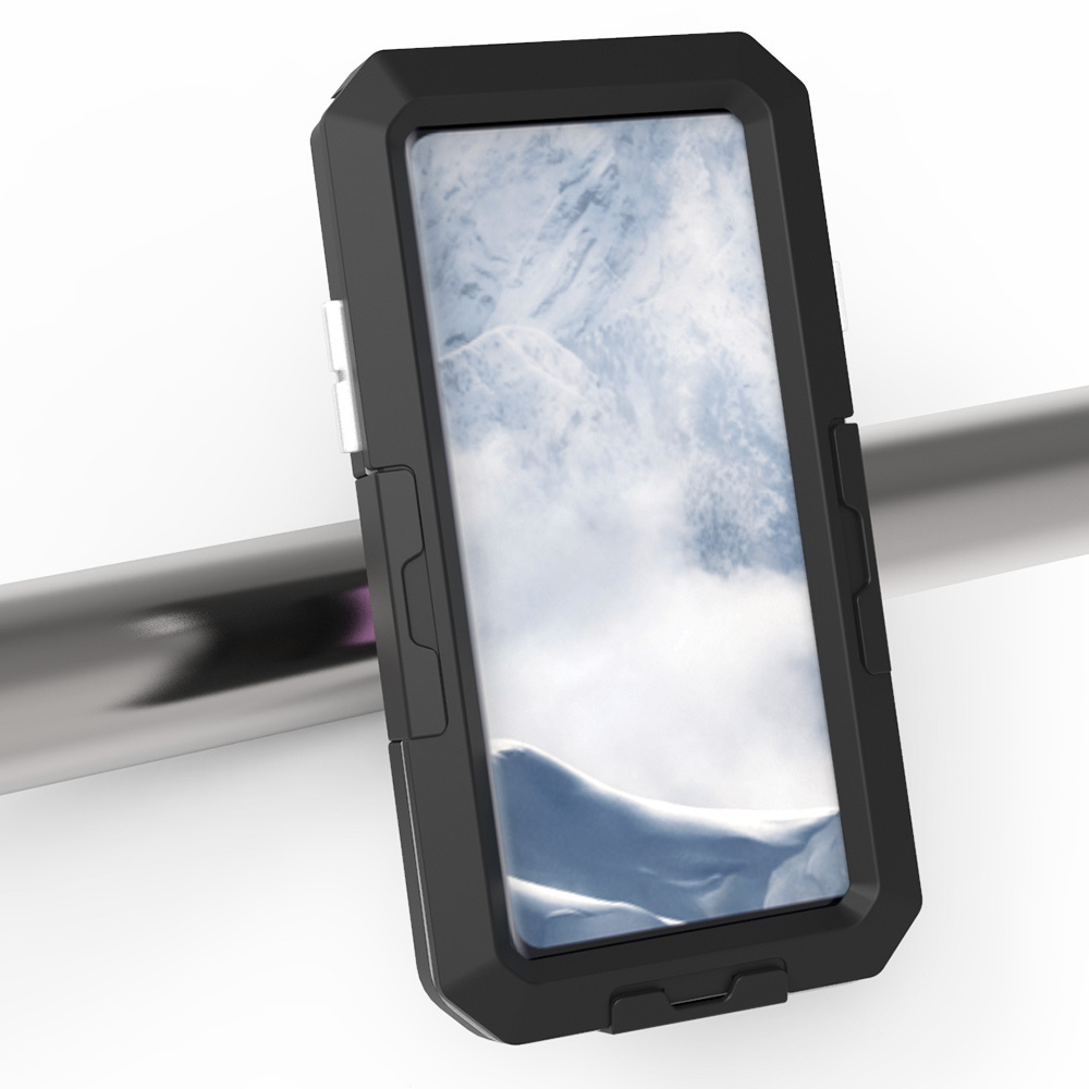 | Description | The Oxford Dryphone Pro handlebar phone mount system securely holds a mobile phone in a convenient viewing position so you can navigate easily whilst on the move. The mounting bracket U-bolts have been designed to attach the opposite way to conventional mounts so that it can be attached to motorcycle bars without coming into contact with the headstock as the mount is tightened.Key Features• Waterproof design (IP6 rated)• Touchscreen compatible • Suitable for Samsung S8+ & S9+• Fingerprint scanner compatible (iPhone & Samsung S8/S9 models only)• Fits 22.2 - 31.8mm ⌀ handlebars• Perfect for navigation• Simple installation• Available in a selection of sizes for Samsung and iPhones What's included• 1 x Angle adjustable mount• 1 x Large bracket for 31.8mm (1 1/2") handlebars• 1 x Small bracket for 22.2mm (7/8") handlebars• 1 x Bracket insert |