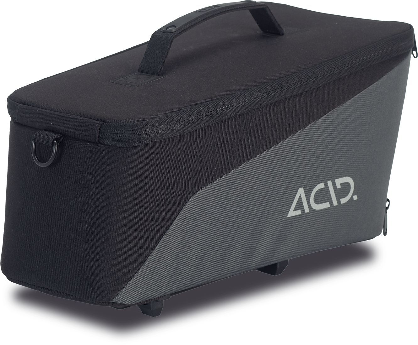 Description Pack your 10 items or less and go - adventure awaits! Okay trips don't have to be huge to be epic. Our ACID TRUNK 8 RILink is the perfect way to carry home your shopping. Compatible with all ACID and CUBE luggage racks we also added an adjustable shoulder strap reflective details a mesh pocket and practical rain cover. Where you go... well that's up to you!