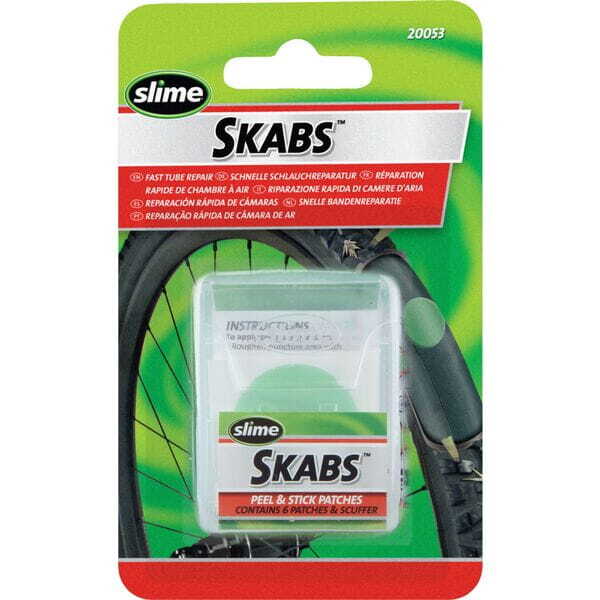 Patch up punctures in your bike tubes with Slime's Peel & Stick Patches. No glue means no mess! These pre-glued tube repair patches are quick and easy to apply, and come in a compact storage container. Just toss them into your bike bag